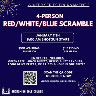 ALL WINNINGS FOR EVENTS AT SNOHOMISH GOLF COURSE ARE PAID IN FORM OF BOOK MONEY OR MEMBER BALANCES. FUNDS CAN BE USED FOR MERCHANDISE, FOOD, BEVERAGES, CART RENTALS OR RANGE BALLS.